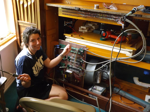 In 2013, the church acquired Moller pipe organ Opus 7658, originally built in 1947. The organ was moved to Christ Church in the spring of 2013 and installed by DeMajo Organ Works of Richmond, VA. At that time, the instrument was also upgraded with the installation of an Artisan digital control system. The photos below were taken during the installation of the instrument. You can hear an MP3 sample of the instrument, with Fr. John Benedict at the console, by clicking HERE. |
