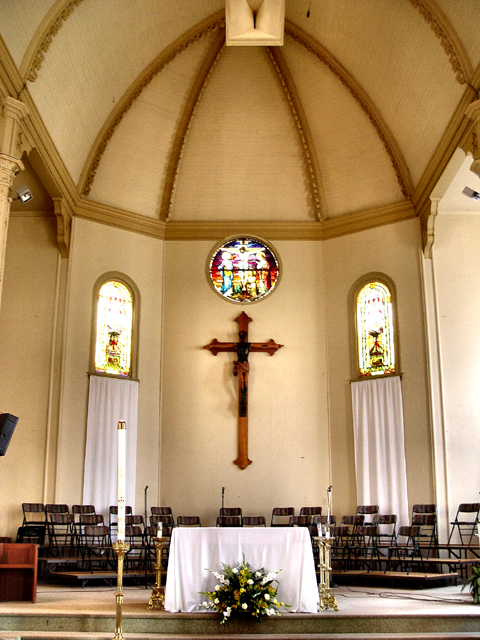 located over the altar. This copyrighted work of art is fashioned from Cypress