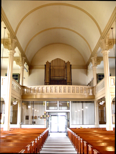 Pilcher organ Opus 708, built in 1910, is a 2 manual, 3 division, 7 rank , mechanical action nstrument. At the time that the church was closed, the organ was in poor but restorable condition. The following notes are from the Organ Historical Society Database of pipe organs:.