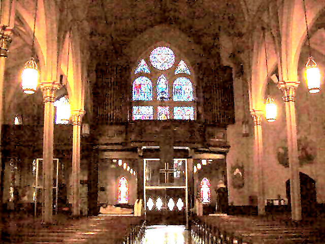 Our Lady Of Good Counsel Church contains a two manual, 11 rank pipe organ which was the original organ for the present structure. While unplayable, most of the organ is still in place or stored in the choir loft. When the organ became unplayable, it was replaced first by a Baldwin electronic and later by a Conn electronic organ. Later, a three rank Wicks organ, which was originally installed in Our Lady Of The Sacred Heart Church on St. Bernard Avenue and North Roman Street in New Orleans, was moved to this church. That organ is still in service at this time. (Information provided by New Orleans organist Joe Hoppe) |