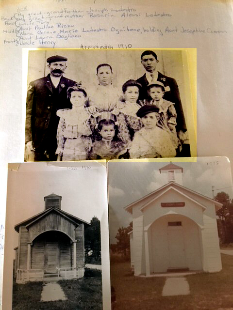 The story passed down to me is, my great-grandfather, Joseph Lodestro, was badly injured in a horse accident. He and his family prayed that if he survived he would build a church on the site of the accident. He survived and built it. I am including a photograph of my great-grandfather from approximately 1910. He is the mustachioed man on the left. The church photos are from approximately 1930, then again in 1978 when my father, mother, and I drove on a vacation from upstate NY and found the site. Just wanted to add a story to the history of this little chapel.