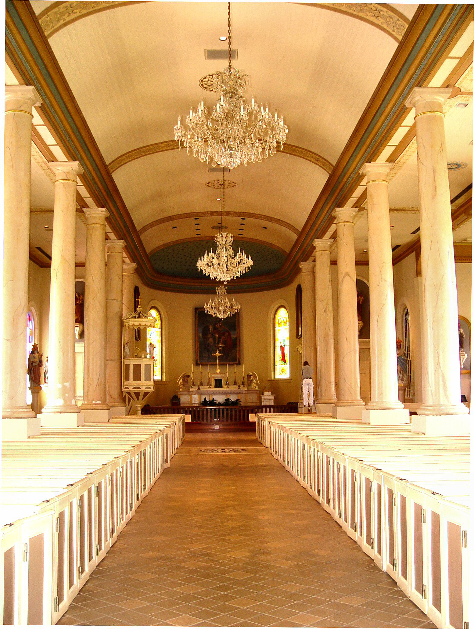 down the main aisle |