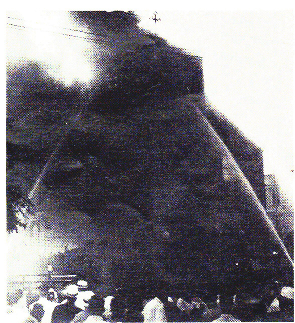 above is a photograph taken during the August, 1945 fire which destroyed the original St. Boniface