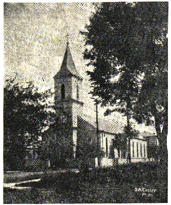 Heart building shown above. Following the fire, the church was housed in the school auditorium on St. Bernard Avenue until the new building was completed in 1955. Thanks to heroic efforts of the church's pastor, many of the religious artifacts were rescued from the burning building. (Historic photos are from original church publications by Roger