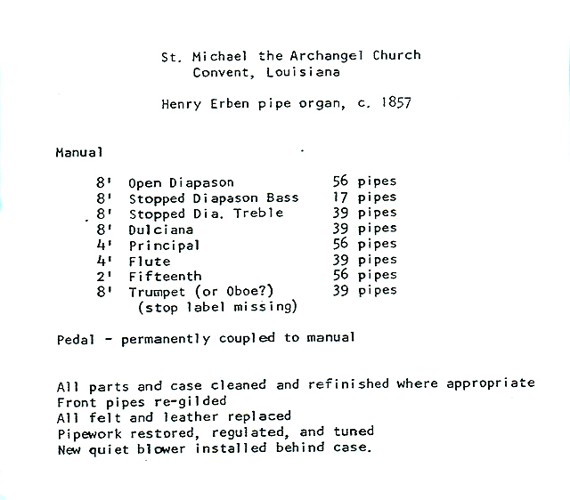 Henry Erben Organ is oldest pipe organ on record in Louisiana. |