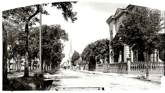 A view of Esplanade Avenue in the 1920's, showing the steeple of the 1895 St. Anna's Church off in the distance. (Photo courtesy of New Orleans Public Library) |