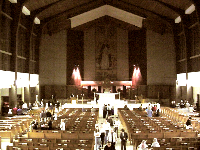 St. Dominic Parish was the first new parish to be located in the Lakeview section of New Orleans. The first permanent church was located in what is now the school auditorium on Vicksburg Street until the new church was built in the 1960's. The first Catholic services for the people of the Lakeview section of New Orleans were celebrated as early as 1912 at the West End Pavilion dance hall. At that time, the site of the present church was nothing but a cypress swamp. Twelve years later, in 1924, Archbishop Shaw designated St. Domninic Parish as an official mission parish. Just prior to WW-II, Lakeview began to develop as the City's drainage system permitted development of several previously swampy sections of the outward areas of town. It was not until 1944 that the first church on the present St. Dominic campus on Harrison Avenue and Vicksburg Street was completed. Following WW-II, and with development of Lakeview into a highly sought residential area by developer Robert E. Smith and others, the population in the Harrison Avenue corridor literally exploded in the years between 1946 and 1955. The parish of St. Dominic has gone from a few residents of the pre-WW-II sparely populated Lakeview neighborhood, to become one of the largest parishes in the City even given the outward migration following Hurricane Katrina. The present church sustained major damage in the flood that followed Hurricane Katrina. Water levels of exceeding eight feet inundated the nave and sanctuary. The pews, furnishings and organ console were severely damaged. The church has since recovered, however, the status of the Wicks pipe organ is not known at this time. The photos shown above are pre-Katrina and were taken circa: 2002 |