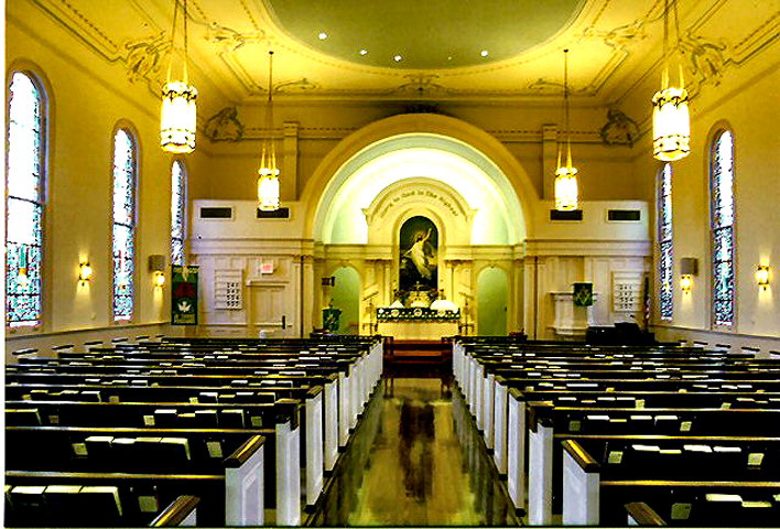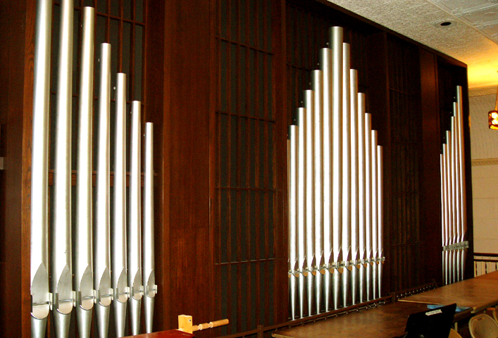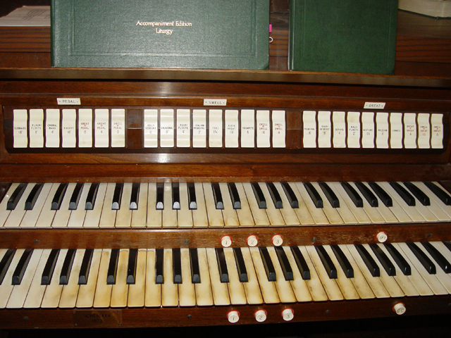 The first organ installed in this church, according to the OUSCDB database, was a 3 manual, 4 division Hinners organ dating to the early 1900's. The present organ was installed in the 1970's. |