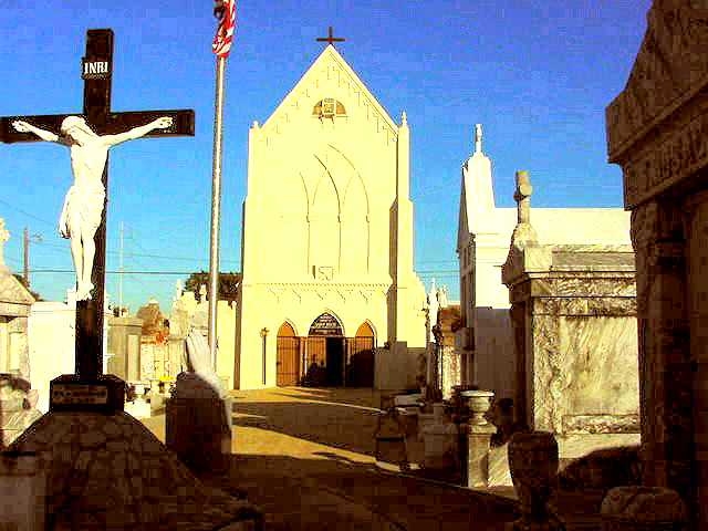 The chapel at Saint Roch Cemetery, also known as the Campo Santo (Holy