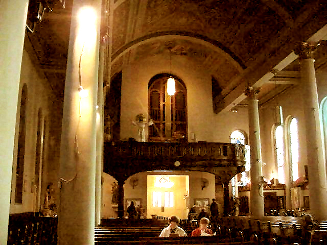 Following Hurricane Katrina, volunteers from the Seattle area began an ambitious program to donate a new organ to Blessed Seelos parish as part of a hurricane relief effort. Two Seattle area Moller organs were donated to the cause and The Pipe Organ Foundation of Mercer Island, WA. oversaw the rebuilding and combining of the organs into a new single instrument. The new organ will be completed in June of 2008. A special feature page has been created to document the arrival and installation. Please click HERE. Below, a pre-2003 photo of the church interior shows the columns that were added following the roof damage sustained in the great 1915 Hurricane. Original historical photos indicate that the room was an unobstructed clear span prior to the 1915 repair. The present clock tower was also added to the church steeple at that time. |