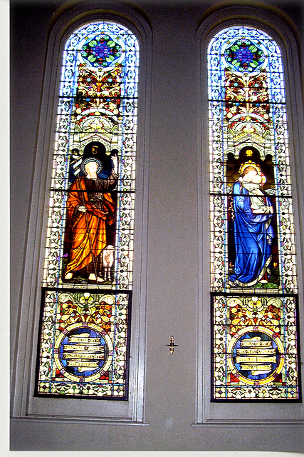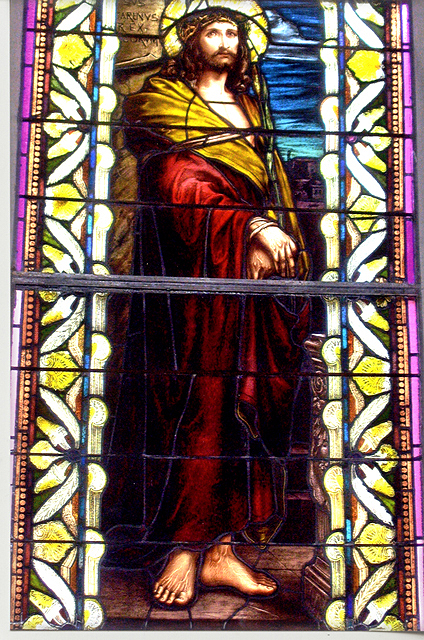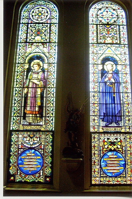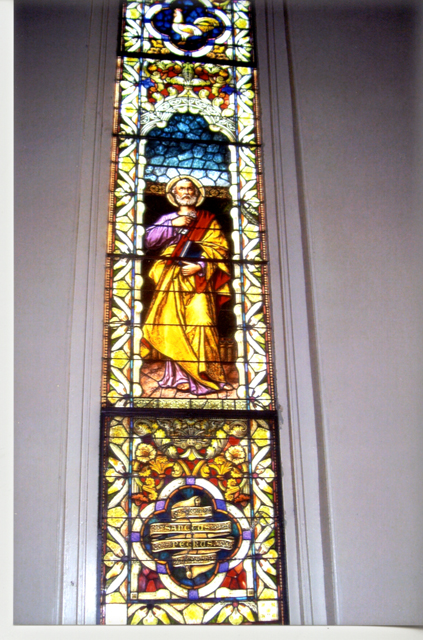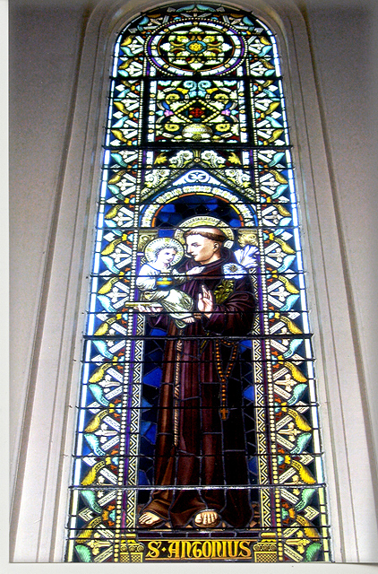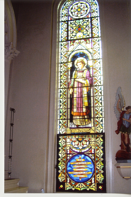 The church contains many beautiful stained glass windows. Each window is a memorial with ten having been added under the administration of Rev. Arthur Drossaerts, and another twelve under the later administration of Rev. A M. Barbier. Mr. Emile Frei, of the famous Frei Glass Company of St. Louis, personally directed the placement of the windows. Thanks to the efforts of the New Orleans Fire Department, the priceless windows were spared from damage during the fire. The following photos, by NewOrleansChurches.com photographer Ellyn Orth-Meier, provide a sampling of the beautiful window art in this historic church. |
