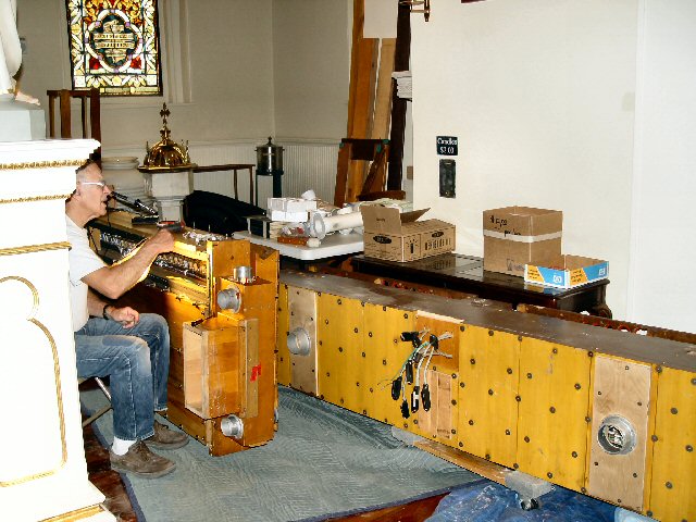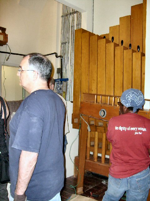 Above, new organ and installation volunteers from Washington State arrive at church on June 2, 2008 |
