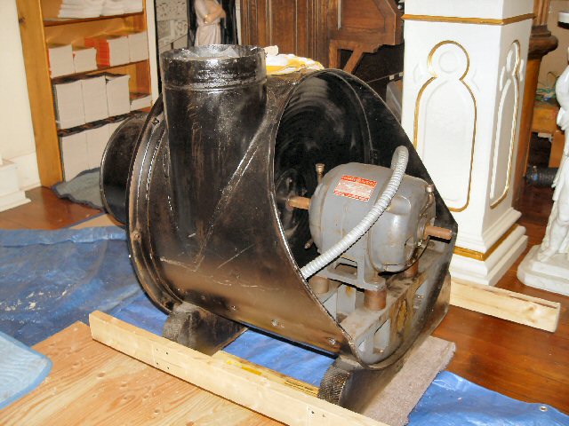 Spencer blower ready to be lifted into choir loft. |
