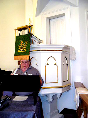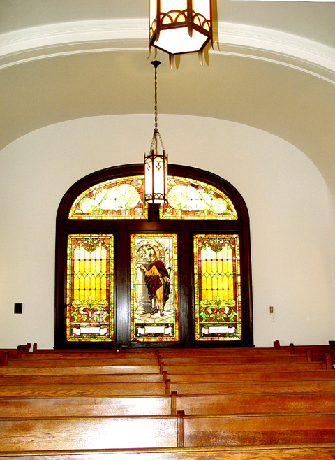 Rive' Company reports that the swell box for the organ was relocated to the rear of the chruch in 2007, but the console remains in its original position. |